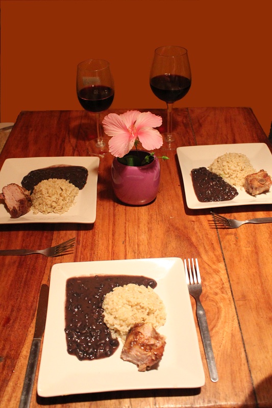 Tivemos também até convidado preparando costelinha de porco, feijão preto e arroz integral, regados com muito vinho Concha y Toro. Valeu Márcio! A costelinha e o feijão estavam divinos (Márcio já conhecido de nossos Quintais de Pavones. Nos encontramos novamente em Santa Teresa).