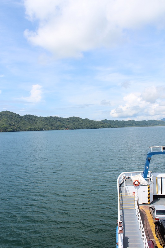Seguimos viagem até a cidade de Puntarenas mais ou menos três horas depois.Chegando lá tivemos que descer do ônibus e caminhar até a entrada do Ferry, que por sua vez nos encantou por seu tamanho e organização. A travessia da costa para a península de Nicoya foi tranquila e as paisagens muito bonitas, se der sorte (nós não tivemos) pode-se avistar baleias e golfinhos durante o trajeto. Chegando à península o mesmo ônibus que estávamos embarcou junto no Ferry e nos esperava no ponto de parada em terra firme, sendo assim embarcamos novamente no ônibus e continuamos nossa viagem até Santa Teresa, com duração de mais três horas, conseguimos fazer o motorista nos deixar em frente ao hotel…ufa!