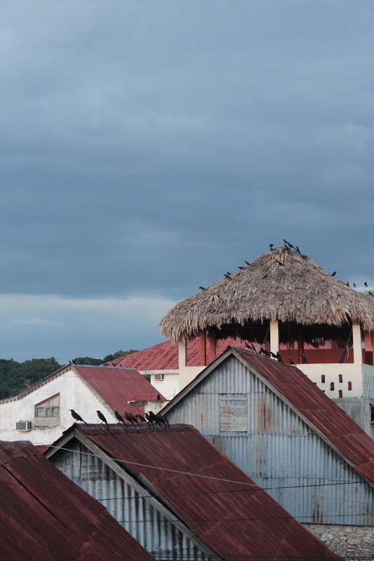 Bom, voltando para nossa caminhada, depois do almoço decidimos dar uma passada no mercado popular de Santa Helena para comprar algumas frutas para o nosso café da manha e também para nosso passeio pelas ruínas da cidade Maia de Tikal. Voltamos para o hotel e fizemos nossa reserva para o passeio do Tikal. Nessa noite, resolvemos jantar em um restaurante local indicado pelo gerente do hotel. Chegamos em um restaurante com as paredes azuis cheias de estrelas desenhadas, com cadeiras e mesas de madeiras e alguns quadros com motivos Maias. Já era um início do que veríamos na manhã seguinte no Tikal. Eu pedi uma pizza pequena e o Ro uma macarronada. A pizza demorou quase 40 min para ficar pronta, e enquanto isso comemos a macarronada que estava divina e tinha chegado em 15 min. Quando terminamos a macarronada a pizza chegou. Finalizamos a noite duas cubas livres!