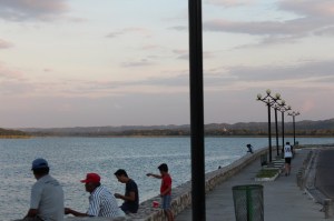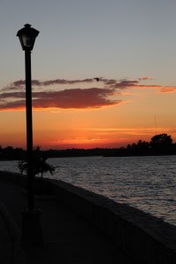 Fomos para a orla lagunar, que mais parece um calçadão de praia, observar o espetacular entardecer e os milhares de pássaros pretos que lotam os telhados vermelhos das casas, os fios dos postes e as árvores em toda ilha. Essas aves fazem essa sinfonia todos os dias em cada amanhecer e entardecer, uma cantoria para nenhum outro pássaro botar defeito. É muito lindo e o som é magnífico. Logo depois caminhando um pouquinho mais, passamos por uma feirinha de comida típica, checamos o que havia e decidimos que comeríamos ali no dia seguinte.