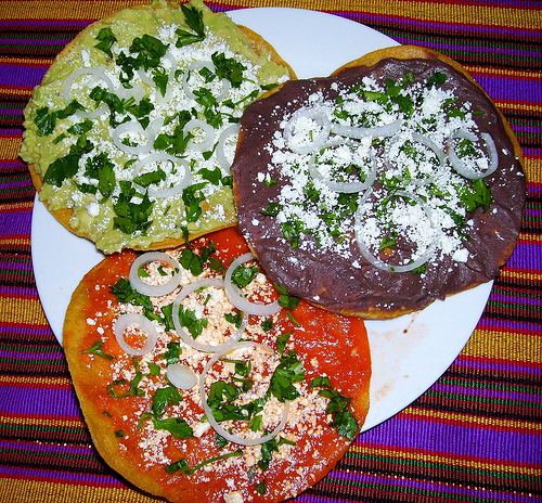 Fim de tarde se aproximando, hoje era o dia de provarmos as comidas da feirinha. Paramos em uma barraquinhas para provar uma bebida chamada horchata (a base de arroz) e comer as famosas tostadas, feitas com milho moído e assado. Imagine um sucrilhos sem açúcar do tamanho da palma da mão, assado no forno, extremamente crocante, essa é a famosa tostada, que pode ter recheios de: carne, frango, porco, macarrão com legumes, vegetais, saladas e queijos. Você escolhe o sabor e quantas irá querer, vale à pena, são extremamente crocantes e saborosas.