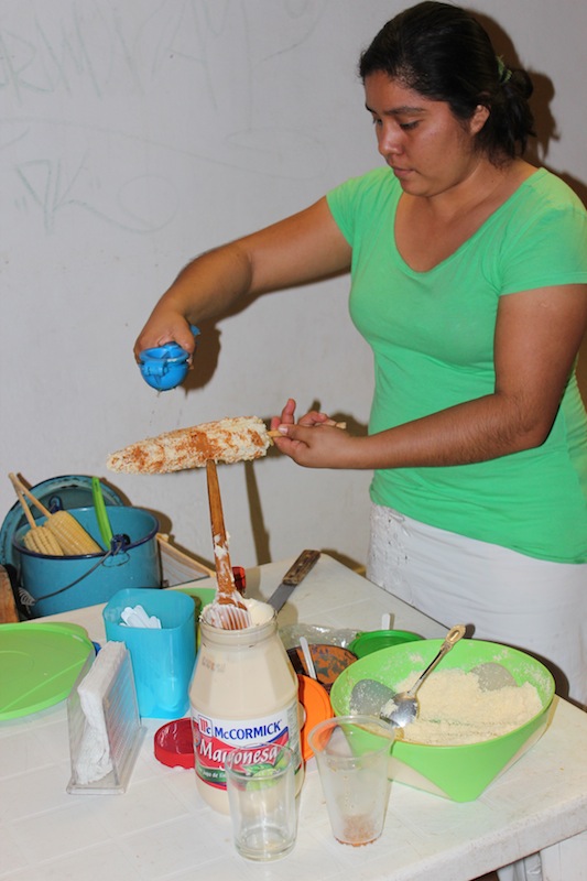 Saímos algumas noites para jantarmos na cidade com eles e em uma delas resolvemos provar o famoso Elote, o milho cozido mexicano que não havíamos experimentado. Resolvi comer de tanto que a Bianca falou que era bom. Realmente ela tinha razão, o milho é maravilhoso e o preparo é bem diferente do nosso milho de praia. Eles cozinham o milho sem sal, quando está pronto colocam um palito na base e vira um pirulito, depois passam maionese em volta, mergulham ele em um queijo ralado tipo parmesão, salpicam de chili e por último espremem um quarto de limão. Que delicia! Eu e o Ro viramos fã!