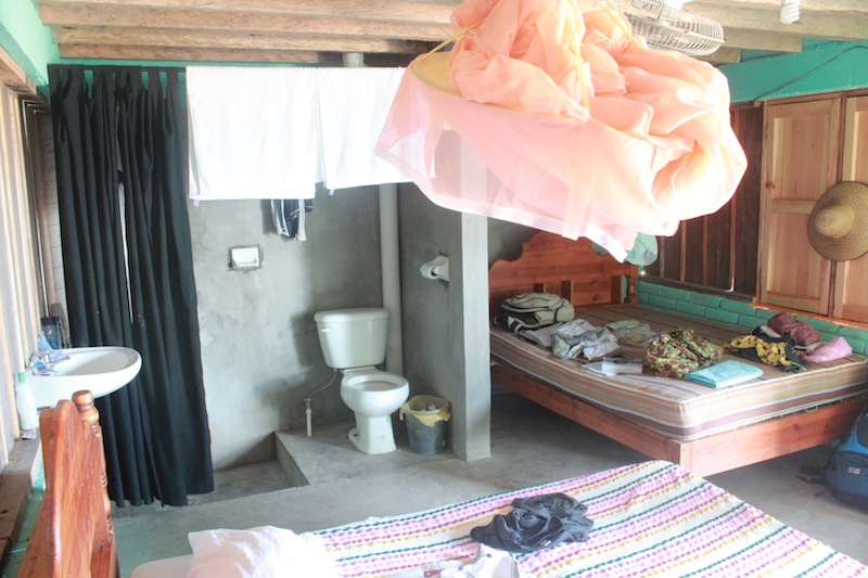 Quando o barco nos deixou na areia, tivemos que caminhar com toda nossas tralhas por uns 10min até chegar no “centro”da praia. Onde se encontravam todas as cabanas onde ficaríamos hospedados. Tudo muito simples e tranquilo. Uma vila de pescadores onde alguns vivem por la e outros apenas fazem dinheiro com as cabanas.