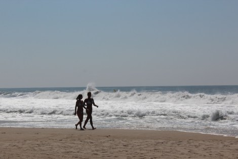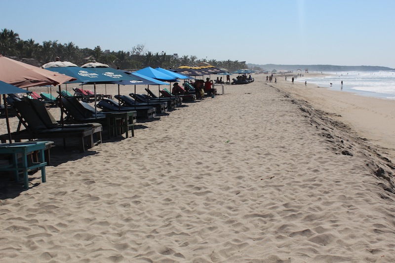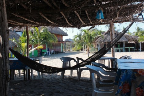 Ficamos em Puerto por 15 dias. Esta cidade praiana tem clima brasileiro, não consegui definir o porque, talvez pela quantidade de conterrâneos que encontramos nas areias. Um deles foi um casal do Paraná (Maria e Vinícius) que estavam de férias com seu filhinho (Pedro) e mais alguns amigos (todos surfistas). Pedro ficava brincando na areia enquanto o pai surfava com o Ro. Eu e a Maria ficávamos tagarelando nas espreguiçadeiras de madeira na praia. Essa estrutura ficava no restaurante Greko’s, onde íamos todos os dias, por todo o dia. Chegavamos cedo, depois do café da manhã em nossa pousada e passavamos o dia inteiro de frente para o mar, com toda mordomia possível. Tudo isso com direito a suco de laranja, camarão, peixes, ceviches, omeletes, fajitas e saladas, sempre servidas por nosso garçon tipicamente mexicano (Santiago).
