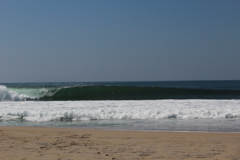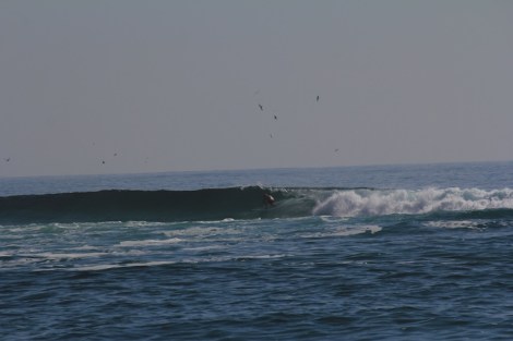 As ondas de Chacahua não são tão famosas como Zicatela, mas são perfeitas linhas direitas que quebram em um pier de pedras. Da areia não dá para ver muito bem, tem que ter uma boa lente para conseguir enxergar as ondas. O Ro e o Jimmy surfaram boas ondas e estavam sempre satisfeitos com o mar. Era uma onda parecida com Barra de La Cruz, só que mais rápida (palavras do Ro). A Bianca conseguiu tirar algumas fotos deles surfando.