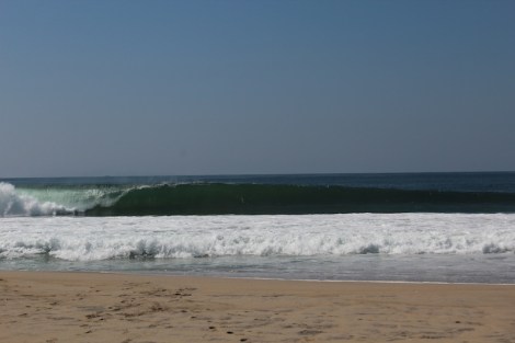 Depois de ler este texto não pude deixar de lembrar de uma pessoa muito querida que doprou esta onda magnífica e encantadora a alguns anos atrás. Meu cunhado bodyboarding Igor Sabedot. Por muitos anos ele me falava de Zicatela e não pudia entender tamanha força e energia até observa-la com meus próprios olhos. Não pegamos Zicatela com todo seu fervor, pois como mencionei a temporada de ondas no México estava terminando. Entretanto por uns três dias vimos o mar mostrar pressão. O Ro entrou e fiquei muito preocupada, havia visto uns três surfistas com pranchas grandes serem engolidos e devolvidos para a superfície com suas pranchas partidas ao meio. Assisti o Ro surfar algumas ondas com muita coragem, e em uma delas para encarar um tubo e sair da água com muita felicidade por ter completado. Parabéns pela coragem! (Palavras do Ro: Morena? você viu o tubo que eu peguei, foi irado!!! você a vaca que eu tomei também? me esmagou todo, medo da porra!!!)