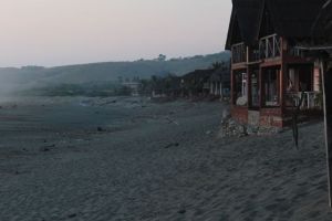 Quando chegamos em Barra de Nexpa o ônibus nos deixou na pista há quase 2km do povoado. Tivemos que caminhar com todas as nossas bagagens por uma estrada de terra, até que por sorte, uma boa alma apareceu no meio do caminho e nos deu carona na caçamba de sua pick up. Checamos algumas cabanas e escolhemos uma de frente para as ondas.