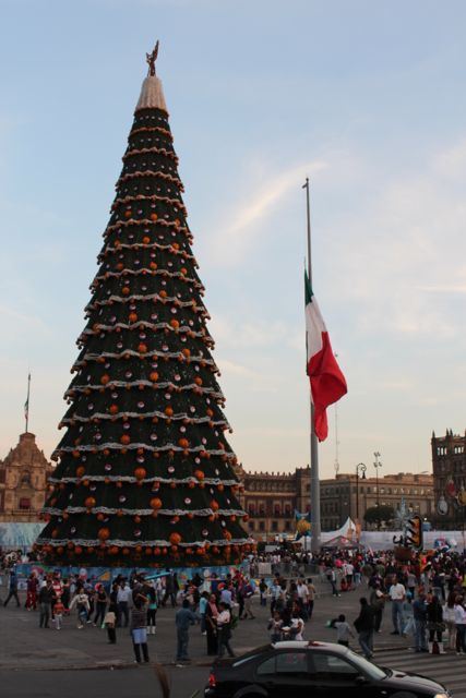 No percurso ainda vimos o Museu de Belas Artes com sua arquitetura imponente, avistamos uma placa com o nome de La Villa, onde se encontra a Basílica da Virgem de Guadalupe, e demos uma volta na praça principal do centro histórico. Nesta praça construíram uma árvore de Natal gigantesca e muito bonita, cercada de luzes e enfeites natalinos. Concluímos o passeio e o ônibus nos deixou no mesmo local que iniciamos.