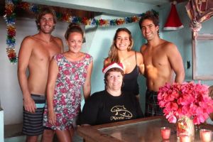 Checamos também o que o hotel serveria na ceia de Natal, que aconteceria naquela noite. Fizemos nossa reserva e um delicioso jantar nos aguardava. Depois do café fomos visitar nossos amigos em Nexpa (5 min de Caleta) e aprensentá-los para Teresa. Passamos a tarde na praia, conversando e tomando coronas. Jimmy e Bianca voltaram para Caleta a tarde conosco para fazer algumas compras para nosso almoço de Natal do dia seguinte. Aproveitamos também para ligar para nossas familias e desejar Feliz Natal.