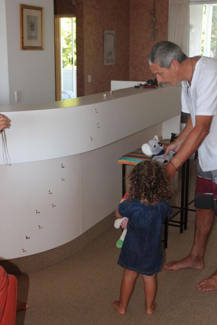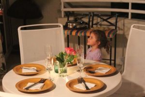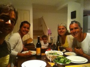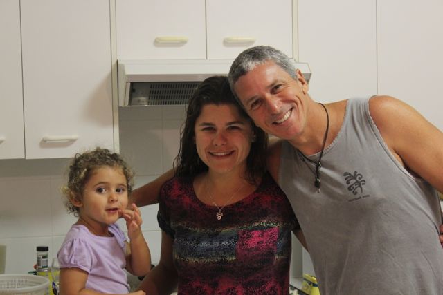 Nos encontrávamos sempre e um dia marcamos de jantar juntos na casa deles. Maria e Rodrigo estavam alugando uma casa bem confortável, em uma vila residêncial e passariam um tempo por lá. O tempo que ficamos em Byron, quase sempre íamos até a casa desses brasileiros muito gente boa! Fizemos churrasco, cozinhamos algumas vezes, jantamos uma vez a especialidade da Maria (arroz negro com lula, DELICIOSO), preparamos o famoso poisson crú (aquele prato que comíamos no Tahiti), brigadeiro para a linda Alice, ceviche e muitos outros pratos. Passamos também algumas noites na casa deles e nas manhãs que acordávamos fazíamos um belo café da manhã juntos. Maria e eu percebemos que éramos muito parecidas, compartilhávamos de gostos em comum, adorávamos sair para degustar um bom café e comer bolo, tínhamos pensamentos iguais, fazemos aniversário no mesmo mês e quase no mesmo dia. Enfim, muitas afinidades!