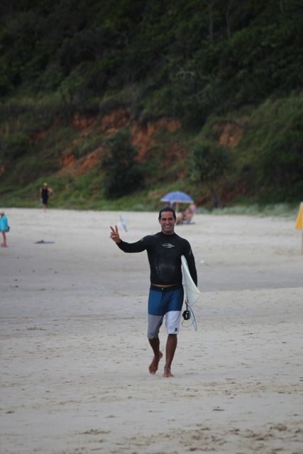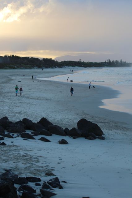 Nossos dias em Byron foram sempre na praia. O Ro surfava e eu aproveitava para fazer yoga e tomar sol, que dessa vez deu as caras e brilhou com bastante força! As praias de The Pass e Broken Head são as que tem as melhores ondas da cidade. A primeira uma longa e excelente direita, com muitos surfistas de todas as idades, principalmente senhores com seus longboards. Já Broken Head, é uma praia longa com vários beach breaks e um canto direito onde quebram excelentes direitas.