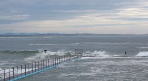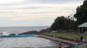 Na manhã seguinte curtimos a cidade, o Ro aproveitou para surfar um pouco, mas o mar ainda não estava dos melhores, e eu fiquei lendo e fazendo algumas filmagens. Na praia de Foster tem uma piscina de água salgada metade na areia e metade dentro do mar, cercada com um muro de pedras, onde a variação da maré faz a troca de água. Muitos senhores estavam nadando nela e fazendo exercícios. Foi bem interessante!