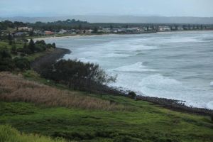 Nossa primeira parada foi em Lennox Head, considerada por muitos australianos uma das melhores ondas da costa leste. Lennox fica a 20 km ao sul de Byron e por ser tão próxima, muitos surfistas que moram em Byron surfam em Lennox. As ondas quebram em uma rasa bancada de pedra afiada e tem um certo localismo dentro da água. O dia que fomos estava nublado, garoando, frio e água do mar gelada. O Ro não se animou muito para entrar no mar, então resolvemos apenas parar o carro em um estacionamento em cima de um morro para ver as ondas, haviam muitos surfistas. Dali também tínhamos uma visão bem completa da cidade de Lennox! Podemos dizer que era bem pequena e charmosa.