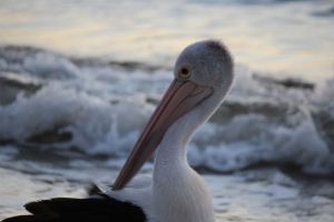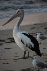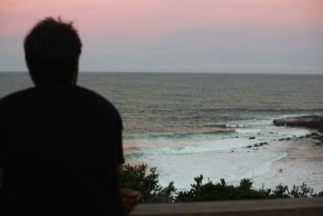 Demos adeus a Sea Rocks e seguimos para Nelson Bay. Essa cidade não estava nos planos, mas o Ro conheceu um Australiano (Evans) em Yamba que disse que deveríamos conhecer, pois ele considera um dos lugares mais bonitos dessa costa. Evans já viajou o mundo quase todo, e já esteve no Brasil também, ele falou que Nelson Bay seria parecido com a Praia da Joaquina em Floripa, bom decidimos então conhecer. Chegamos lá quase no final da tarde e pudemos apreciar um belo por-do-sol em uma praça na frente da praia. Ventava muito e fazia bastante frio. O vento ajudou a melhorar o tempo e limpar o céu, deixando um final de tarde bem colorido. Nessa praia vimos uma ave que ainda não havíamos encontrado, um albatroz gigante. Seu bico era rosa bebê, seus olhos eram amarelos, sua pupila negra, suas asas grandes e longas, sua plumagem branca e negra, suas patas curtas e azuladas. Muito gracioso!