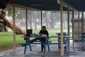 Em Yamba ainda frequentávamos a biblioteca, que continha internet grátis! Assim podíamos checar os próximos dias de swell, ver e-mails, escrever no blog e falar com a família! Quase em frente a biblioteca, fazíamos nossos almoços em um espaço que havia umas churrasqueiras cobertas, banheiro, água potável e dois campos de Rugby, o esporte preferido dos australianos!