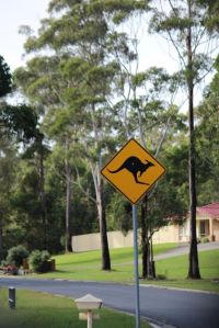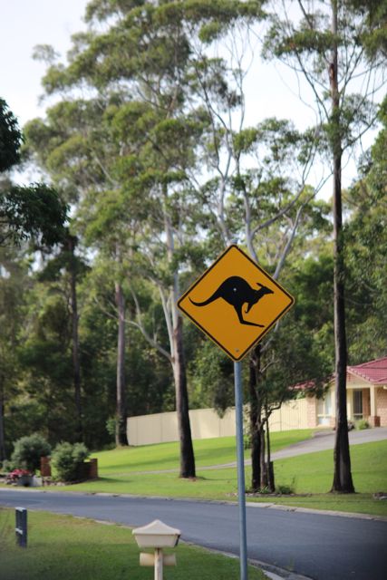 Bom! depois de 10 dias partimos no sentido sul em direção a Sydney, mas com muitos destino a conhecer no meio do caminho. Logo na saída de Yamba vimos muitas placas indicando cangurus. Com muitas expectativas de encontrá-los, fomos mais devagar na estrada e eu atenta olhando para todos os lados, observando cada árvore, cada gramado, até que avistei uns 5 cangurus deitados em um gramado, tomando sol. Saímos da estrada e entramos em um acesso do nosso lado direito, andamos um pouco mais e demos de cara com muitos, mais muitos cangurus, acredito que tinha uns 50. O mais impressionante é que eles estavam nos quintais das casas em um bairro residencial! Filmamos, fotografamos, fizemos tentativas inúteis de chegar bem próximos e apreciamos. Vimos cangurus adultos, filhotes, fêmeas com filhotes em sua bolsa na frente da barriga e vimos machos. Admiramos o jeito engraçado de caminhar, onde apoiavam as patas dianteiras no solo, a cauda também ficava apoiada e as patas traseiras se moviam a frente, a coluna subia formando um arco e a cabeça conduzia todo movimento.