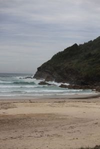 Por fim chegamos em Seal Rock, um pequena vila de pescadores e um dos poucos lugares dessa costa onde o desenvolvimento ainda não chegou. É um lugar famoso pelas excelentes ondas que quebram em diversas praias. Ao contrário das outras praias que passamos, essa estava perfeita para surfar e o Ro aproveitou bastante. O dia não estava dos melhores e pegamos muita chuva quando chegamos. O único dia de sol, aproveitei para sair do carro, caminhar na areia da praia e fotografar as paisagens. Não deu para filmar e nem fotografar o Ro surfando.
