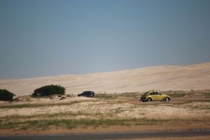 Rodamos toda a pequena cidade duas vezes, observamos vários locais, para ver se era viável ou não dormir ali, até que encontramos um em cima de um morro, de frente para o mar. Paramos, preparamos o carro para dormir e depois ficamos um pouco do lado de fora admirando a bela noite e o céu estrelado. Fazia um barulhinho delicioso das ondas do mar se desfazendo na areia da praia, além de um frio gostoso, daqueles que dá vontade de acender uma lareira, fazer um chocolate quente e se enrolar no edredon. Bom! não tínhamos leite para fazer um chocolate quente e muito menos uma lareira, mas tínhamos nossos sacos de dormir e nosso cobertor. Perfeito!