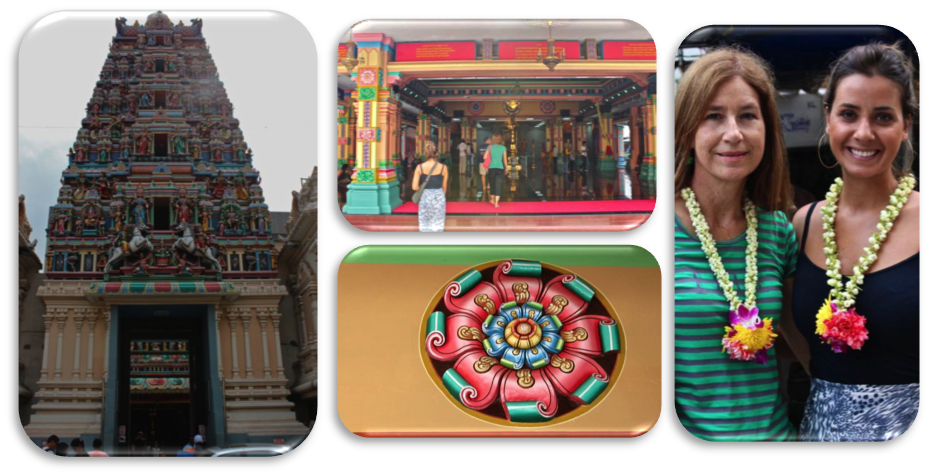 Fizemos um passeio por outra parte da cidade, passando por muitos outros pontos turísticos como: Little Índia (pequena Índia), Chinatown (Pequena China) e um templo Hindu chamado Sri Mahamariamman. Visitamos também muitas lojas, mercados artesanais e de comidas. Percorremos a pé todo o centro, foi tudo fascinante e muito gostoso. No final eu ainda recebi um colar de flores da Debby, que pessoa amada!
