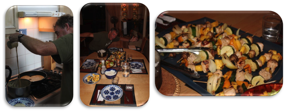 Todas as noites jantamos todos juntos, Richard e Debby sempre faziam alguma comida deliciosa, como: churrasco (para lembrar do Brasil), comida mexicana, comida americana e muita salada de todos os tipos. Tudo muito colorido e delicioso. Adoramos todos as refeições, que saudade! No final de cada jantar sempre ficavamos conversando sobre pontos altos do dia de cada um, uma atividade bem interessante para agregar a família e nos une muito mais. Sempre com uma vela acesa e a TV desligada é claro!