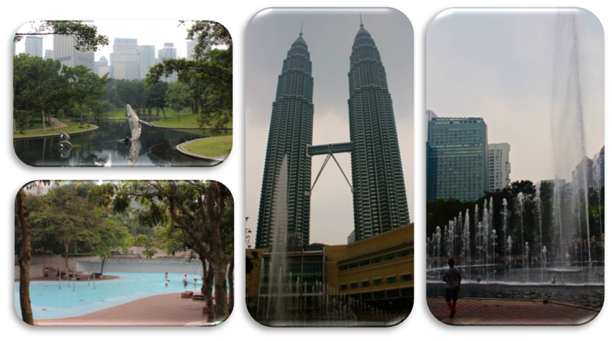 Fomos visitar também as famosas torres gêmeas, a Petronas Twin Towers, no complexo KLCC, cartão postal da Malásia e também local onde foi gravado o filmeMissão Impossível, com o ator Tom Cruise. As Twin Towers são dois edifícios muito altos, com uma arquitetura contemporânea, imponente e moderna. Dentro das duas torres há um grande shopping, com belíssimas lojas, restaurantes para todos os gostos, mais principalmente comida local (Malai), aquário e um museu interativo sobre o petróleo. Quem tiver interesse de ver a paisagem da cidade de cima, pode subir nas torres e admirar a vista da cidade. Quando fomos conhecer havia uma névoa muito densa em toda a cidade, isso não nos deixou subir e fotografar. Ficou para uma próxima vez! Na parte de baixo das torres, há um complexo de parques, com piscinas, lagos, pontes, gramados e muito verde.