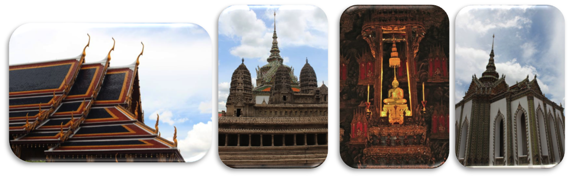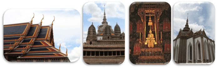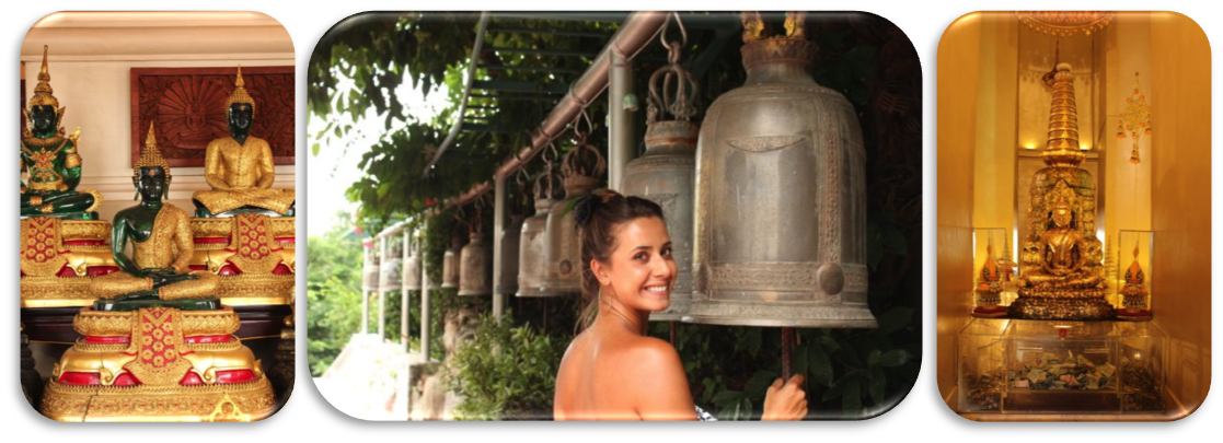 Dentro do templo encontra-se o famoso Buda de Esmeralda, esse foi esculpido em uma pedra de esmeralda e finalizado com banho de ouro em algumas áreas. Ele está instalado em um grande templo dedicado a ele todo decorado e rico em detalhes dourados. Aqui também visitamos um museu e curtimos as áreas externas que são impecáveis, nelas encontramos um Mini Angkor Wat (cidade que visitaríamos no Camboja, porém, não fomos). Vale muito a visita!