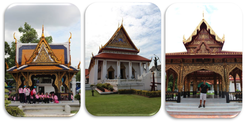 Visitamos também o “Grand Palace” (Wat Phra Kaeo), localizado no centro da cidade. Caminhando pelas ruas ao redor deste templo consegue-se ver os imensos telhados vermelhos e verdes, cúpulas pontudas douradas encantam os olhos de quem passa por perto. Todos são obrigados a cobrir os ombros e pernas, em forma de respeito. Levamos toda uma manhã percorrendo os corredores, admirando a arquitetura peculiar, as esculturas ricas em detalhes, pinturas em murais e muitos Budas espalhados por todas as partes.