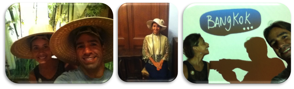 Conhecemos também o “Museu de Siam” e este foi pura aventura! Iniciamos o museu com um vídeo de introdução para a cultura do país e daí para a frente foram só surpresas e conhecimentos maravilhosos. Aqui pudemos apertar botões e ouvir músicas, assistir a filmes, jogar, escrever e até nos vestimos com roupas de época, com direito a chapéu, colares, blusas rendadas e muitas outras facilidades da época. E no final podíamos escrever mensagens em computadores que reflectiam na parede. Bem divertido, foi o melhor museu. Fica a dica para quem quiser visitá-lo, após as 17:00 é free!