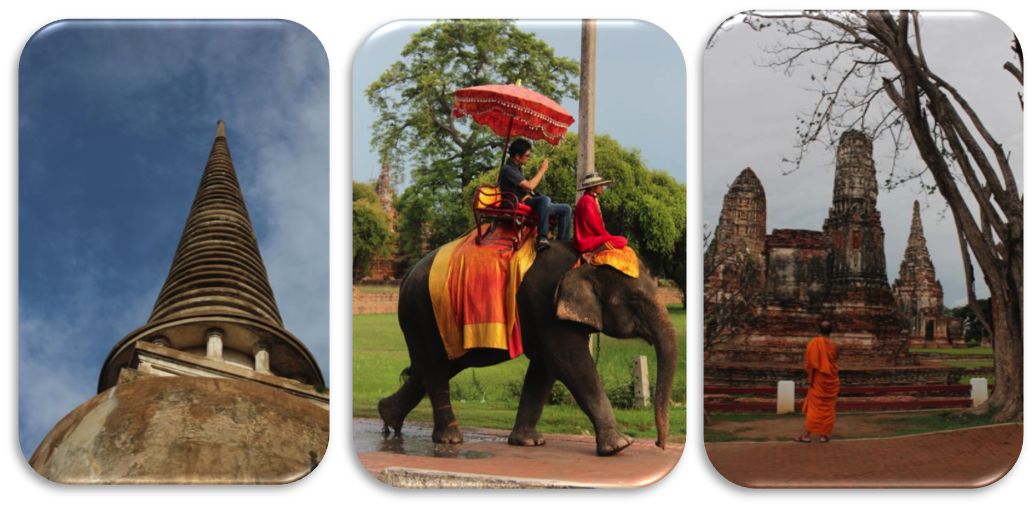 Decidimos fazer uma viagem de trem para a cidade histórica de Ayuthaya, localizada ha apenas 2h de Bangkok e que foi tombada pela Unesco como Patrimonio Mundial. Ayuthaya era a antiga capital da Tailândia, hoje o que resta nesta província são as magníficas ruínas dos templos e palácios que remontam a 1350, ano em que a cidade foi fundada. Os restos do palácio real provam que o Grande Palácio de Banguecoque (Bangkok) está inspirado na arquitetura característica da cidade antiga.